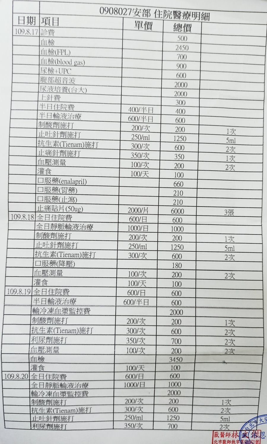 兩家醫院醫療費用