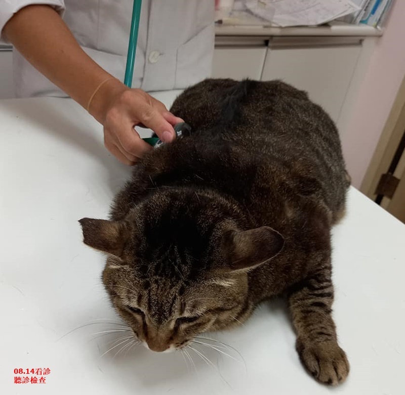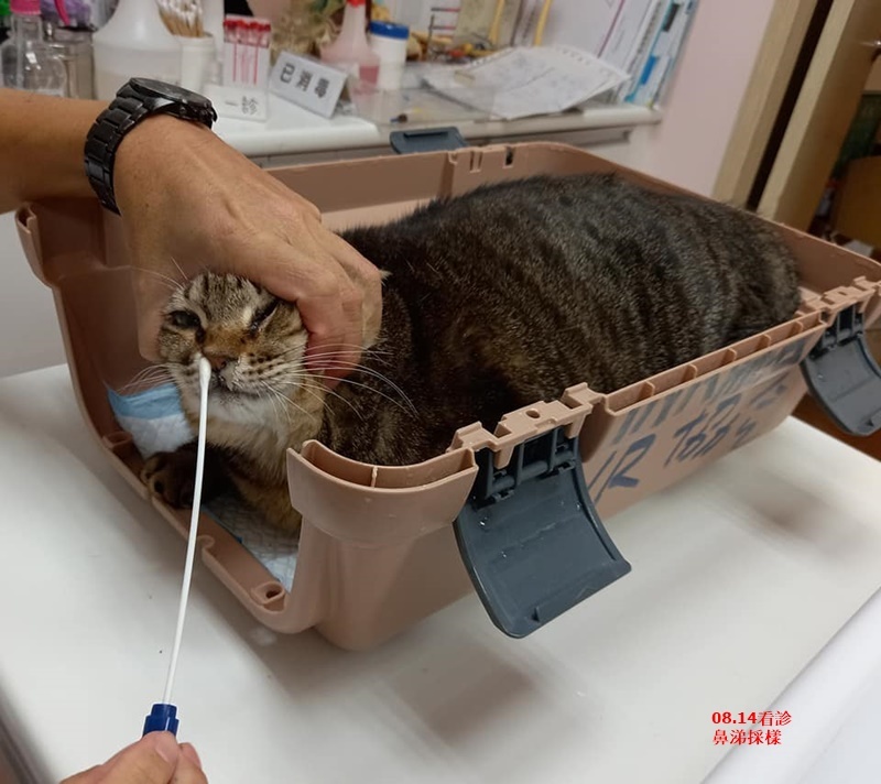 醫師檢查Callme鼻腔狀況,表示鼻涕有變多的趨勢,肺部聲音沒有問題,但在診間抽血時醫師觀察到呼吸較喘,可能是因為緊張所致,建議回協會後,觀察幾天有無咳嗽或呼吸較喘的跡象。