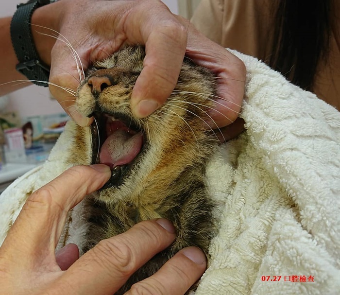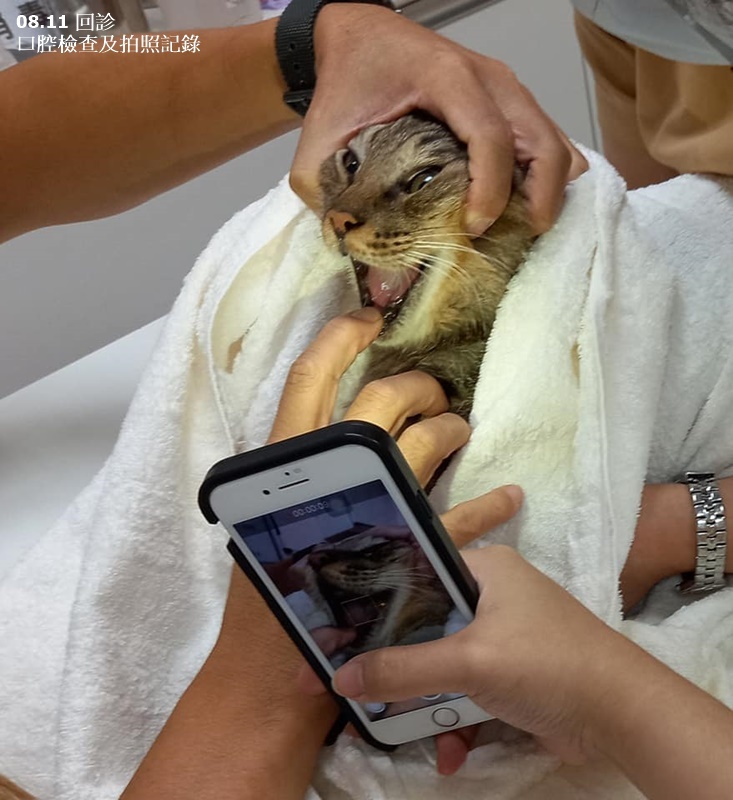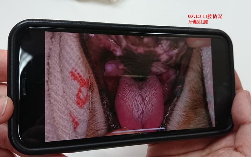 口腔檢查左下和右下還是有紅腫,右上方的狀況比較好,嘴角沒有流血跡象。