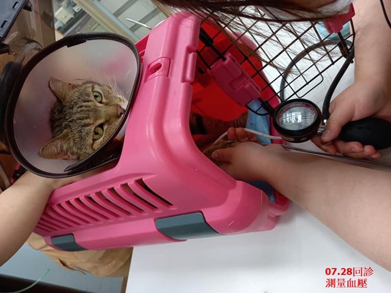 今天回診追蹤血壓,jasmine之前血壓偏高,曾達到180,今天心跳192,血壓是160,這樣數值是可以的,袁醫師說明,高血壓常見是腎病或甲狀腺問題所引起,jasmine應該就是腎病的問題,有些腎臟病引起高血壓的貓咪會須要吃到降血壓藥,但通常是先吃血擴藥,血擴藥有達到效果就不需吃降血壓藥了,jasmine吃的血擴劑量很低,但應該要吃較長時間,不能很快停藥。