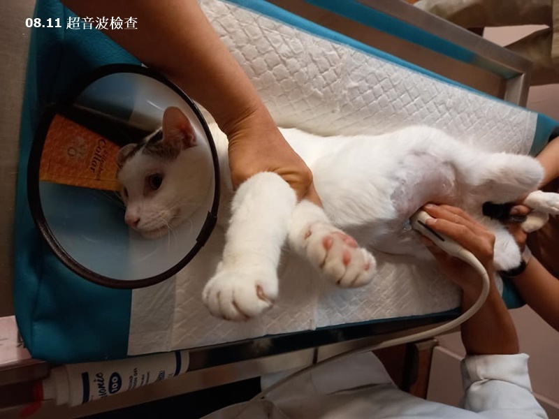 超音波檢查,腸繫膜淋巴結與之前一樣腫,腎臟旁邊淋巴也出現腫的情況,在超音波檢查將毛剃掉後,發現皮膚有很多紅點,但鐵雄並未出現抓癢情況,較不像單純的皮膚過敏,林院長提到,淋巴癌會影響到淋巴及皮膚,若要確定,會須要手術採樣,因目前鐵雄精神食慾正常,體重也增加,先開抗組織胺看皮膚狀況有否改善,胰臟及淋巴須持續追蹤。