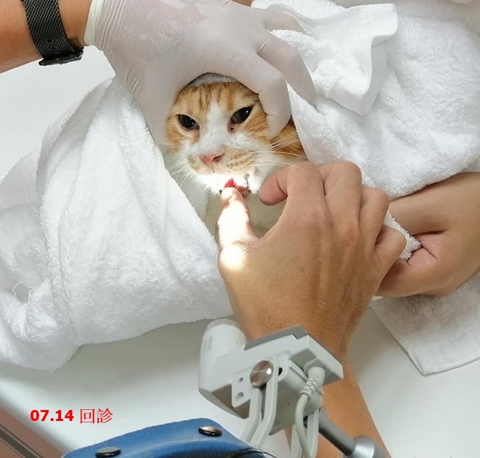 出院後仍持續回診追蹤,8月間食慾變差再提前回診,X光檢查肺部影像有些花,可能是呼吸道問題影響食慾,9月再出現大叫的情況,鎮定後檢查是口腔有一處口炎引起的增生組織,醫師開始提高類固醇劑量,如果提高劑量後增生組織仍未消除,就須手術切除。