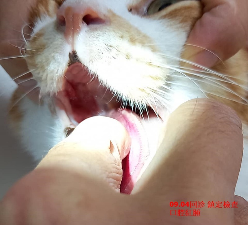 因糕糕仍有出現大叫,今鎮定後詳細檢查,口腔右後有一處增生組織,是口炎所引起,糕糕大叫可能與此有關。