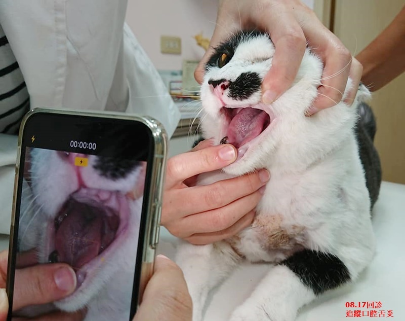 鮮草因有口炎舌炎、流口水,為接受牙周手術至心臟專科檢查,牙周手術同時採樣後,開始打干擾素,希望讓鮮草的口腔情況得到改善。