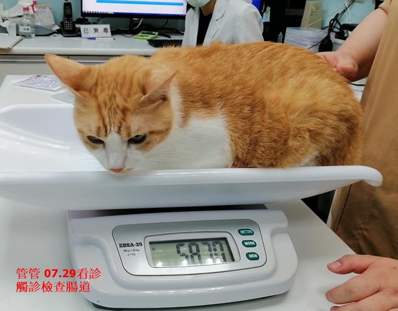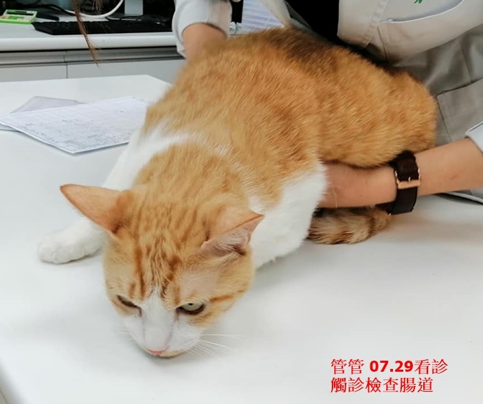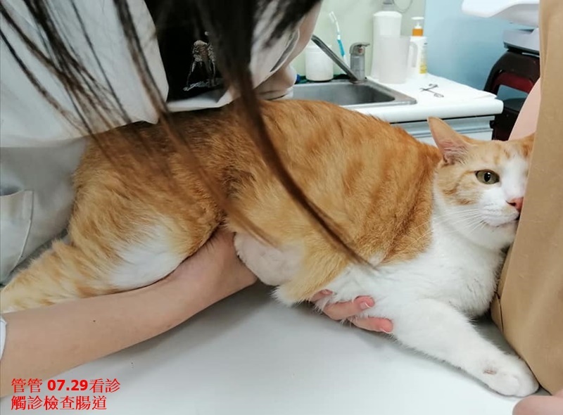 管管在使用干擾素及藥物治療後,口腔的紅腫有逐漸消退,食慾也都不錯,本已逐漸延長回診時間,但在2020年6月19日因為食慾不好、泥便而臨時約診,檢查結果有發燒、上呼吸道症狀及腸胃炎,醫師研判可能與食物有關,開腸胃用藥及需打皮下以免脫水,用藥一周後情況有見改善,繼續取藥服用,7月9日再回診,雖然腸道還有些腫,但體重已有增加很多,食慾及便便也穩定很多,藥只要再吃一周就可以停。