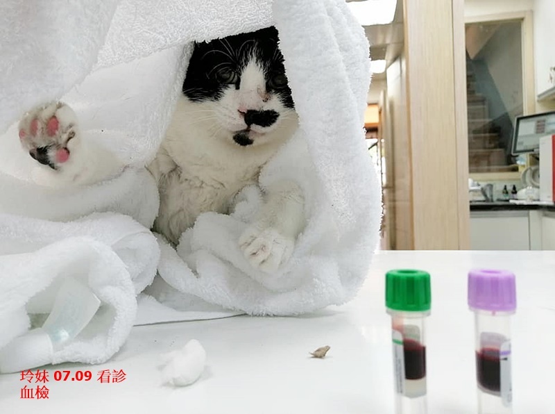 協會帶他們到醫院檢查,他們出現了嘔吐的情況,經檢驗,一隻為喵瘟陽性一隻為陰性,研判是轉換環境的緊迫導致體內原有病毒爆發,幸而有努力撐過來,但貓瘟痊癒後卻又出現了感冒情況,在醫院住了長達2個月的時間才終於穩定回到協會安養之家住下。