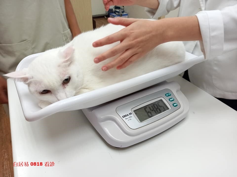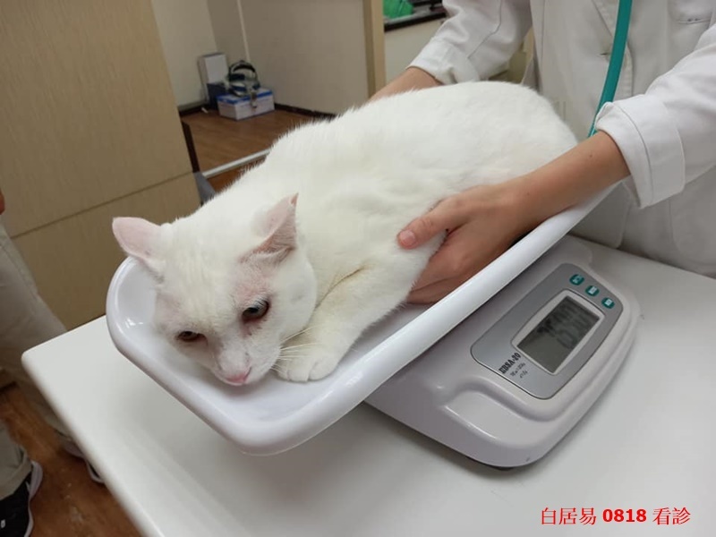 觸診聽診、口腔檢查都沒有發現異常,外觀較明顯的症狀是兩眼淚眼、分泌物,有輕微結膜炎,根據白居易的病史,可能是卡里西病毒發作的影響。