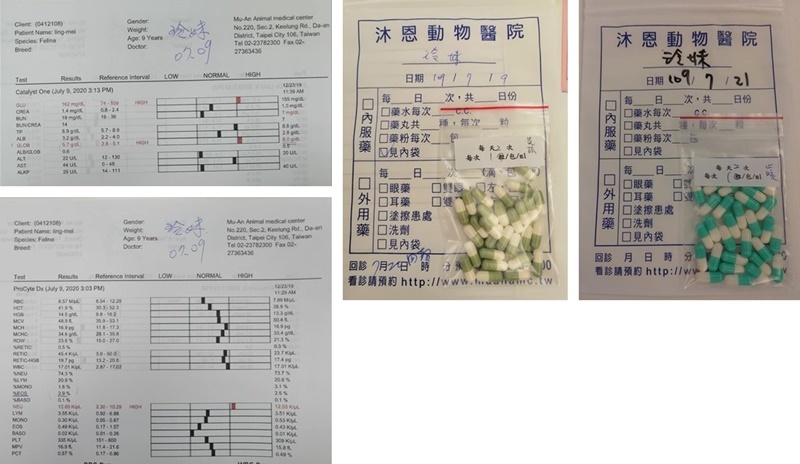 2020年7月初,玲妹多次出現咳嗽,於7月9日至沐恩看診,X光檢查,氣管及肺部都有些發炎情形,並沒發現其他跡象顯示是細菌感染,所以不開抗生素,只吃消炎及氣管擴張藥,於7月20日回報醫師仍有一些咳嗽,醫師再開止咳用藥,幸好藥吃完後至今,玲妹都沒有再出現咳嗽,食慾也非常穩定。