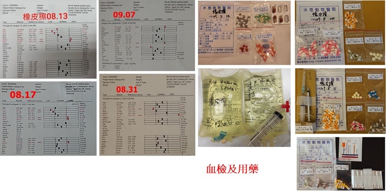 醫師研判橡皮擦精神狀況還算不錯,在候診時有嘔吐,醫師建議止吐藥改為每早一次,今日僅注射造血針就可,下週驗血檢再看指數規劃用藥。