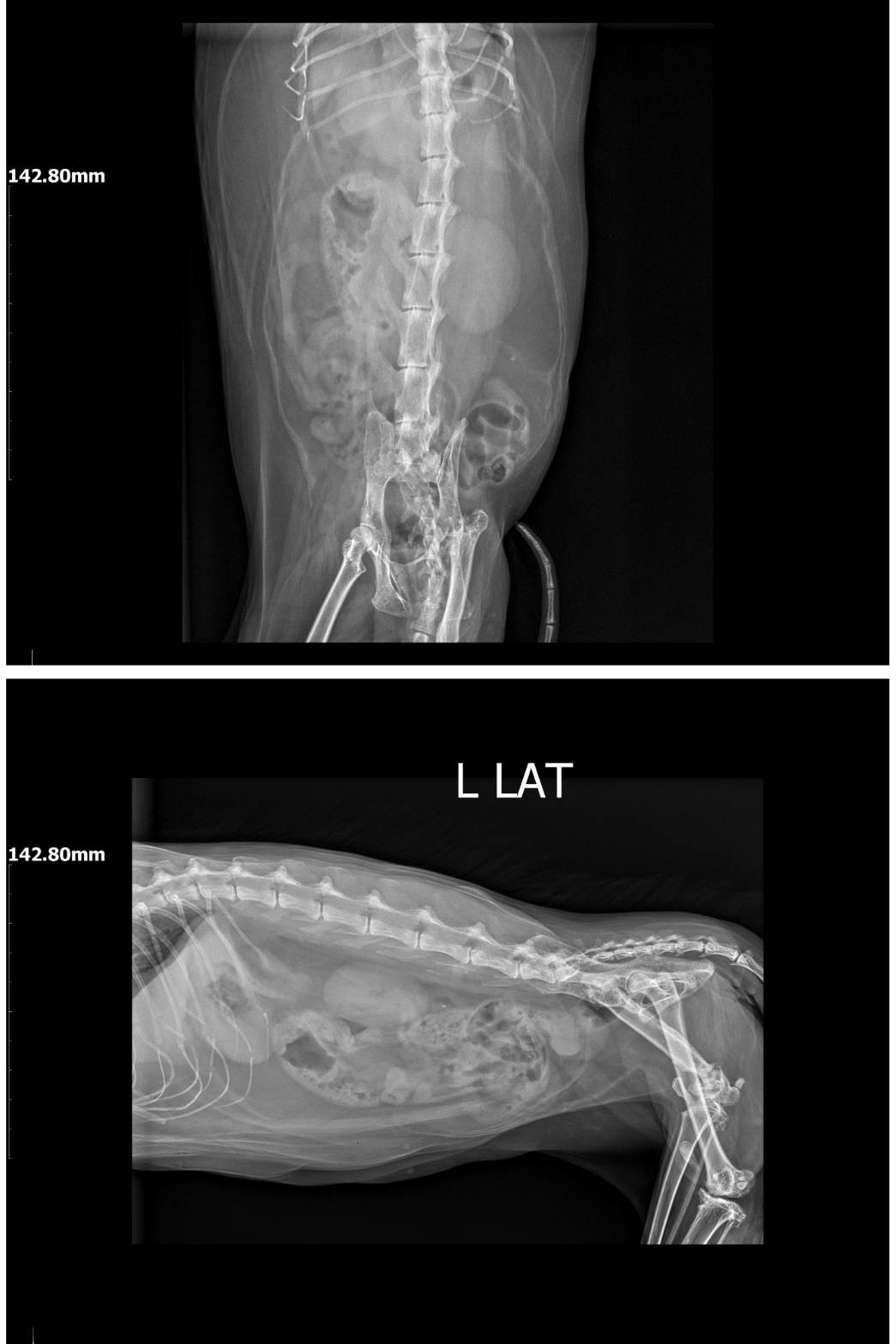 2025年7月1日沐恩回診,因疝氣摸起來變大詢問沐恩約診檢查,原本左側的腹壁疝氣已經定型,目前X光中只有小腸及脂肪疝出,降結腸及膀胱都沒影響,同時只要排便排尿正常就沒問題,但需要控制食量,因為乖妹的體重過重,如果體重沒控制持續上升,將會影響到脂肪突出疝氣的量。