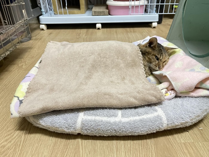 出院後的阿咪除了原來的腎指數高仍須打皮下維持腎臟功能,也要開始吃心臟用藥,還有因紅血球指數不穩定需要打造血針劑,並持續回診檢查以調整輸液及用藥劑量,在阿咪吃不好時照護員也少量灌食以維持阿咪的體力,2025年5月27日,體重有維持,不須血檢,原本是要做胜肽治療,但上靜脈時發現血管塌陷無法上針,這是因為阿咪原先就循環不好,加上住院開始打靜脈注射的影響,所以讓血管逐漸塌陷。