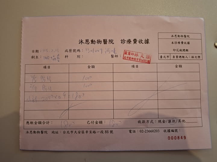 所在縣市/合作醫院: 台北市/沐恩動物醫院