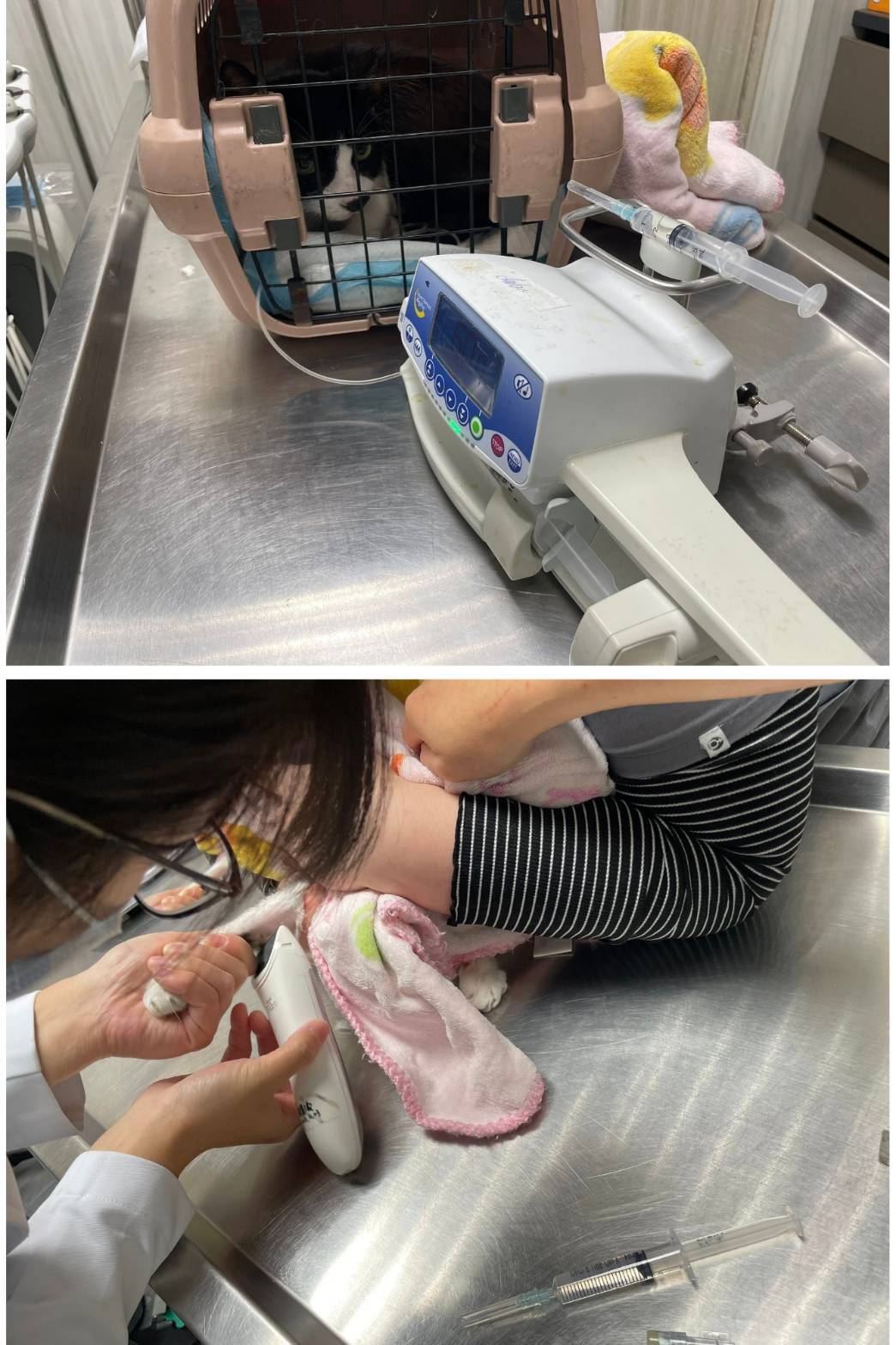 2023年8月間的回診因血檢腎指數升高開始打皮下輸液,還好兩週後回診指數有降下來,但為避免變化,還是需要持續打;2024年10月間為讓新阿賓的健康能更為穩定,開始給予胜肽治療,隨著病情改善也可逐漸延長回診時間。