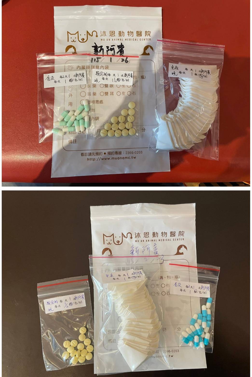 1.免疫抑制劑:每天一次一包,混於罐頭內,晚班。