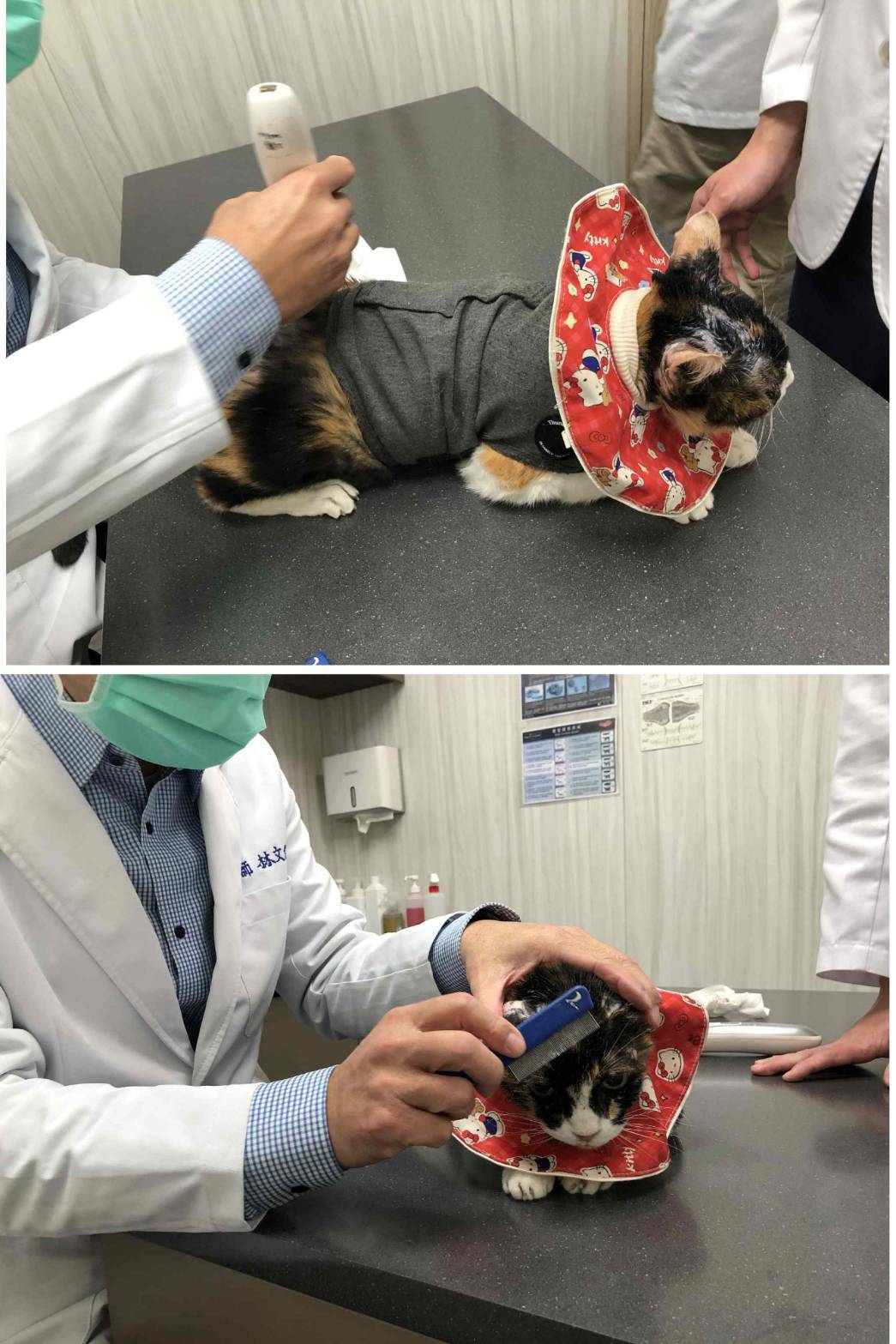 醫師幫花嬸剃後背毛和梳毛