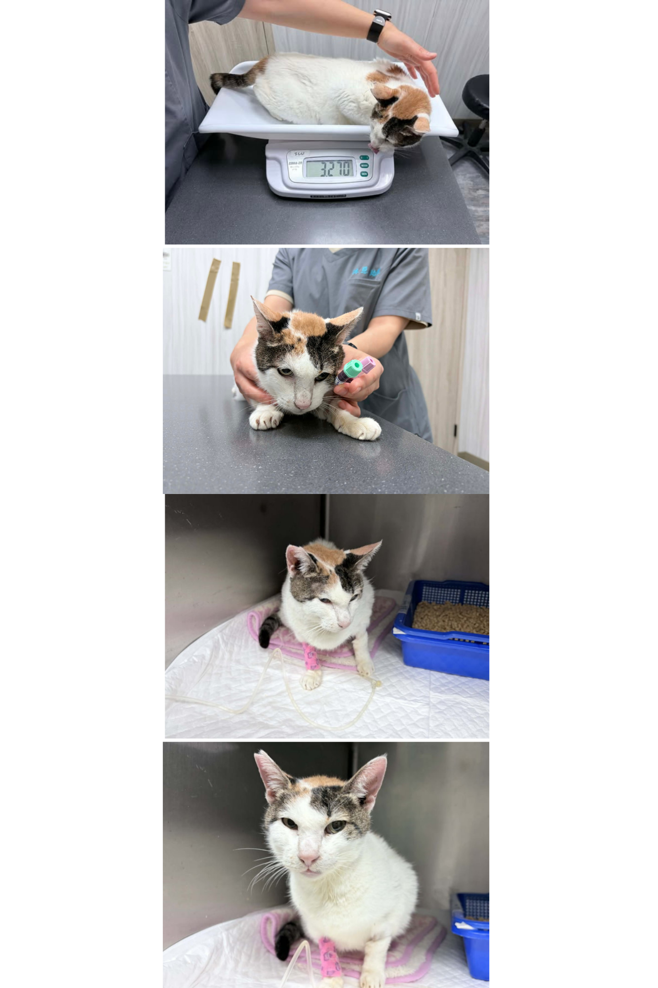 候補人員: 因考慮無人遞補、轉匯收費、信用卡刷卡匯率、寄送收據與郵資等成本,每筆醫助人數將斟酌彈性增加1-5位名額。 動物病情說明: 原本十分狼狽的老三花(善法),在安置兩週後,模樣越來越豐潤了一些。