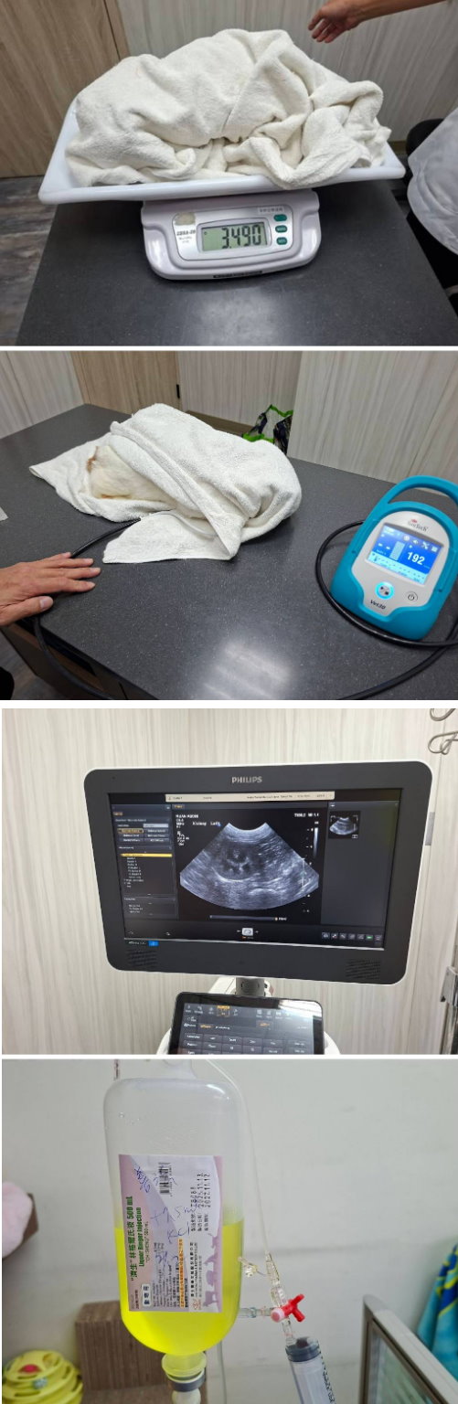 2026年2月3日於沐恩就診,因善法持續連日食慾不振未自主進食,經血檢及X光和超音波檢測,善法血壓偏高且鉀離子過低,同時還有脫水及腎衰竭狀況,因此在醫院當日進行施打含鉀點滴,每日需施打皮下,食慾促進劑每天使用,止瀉藥維持一天一次,並於10
