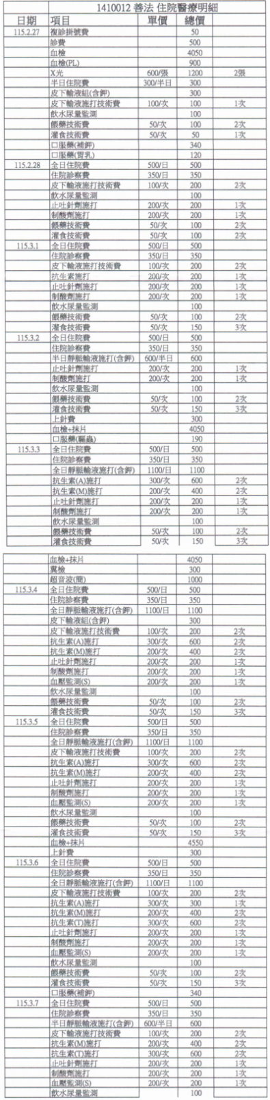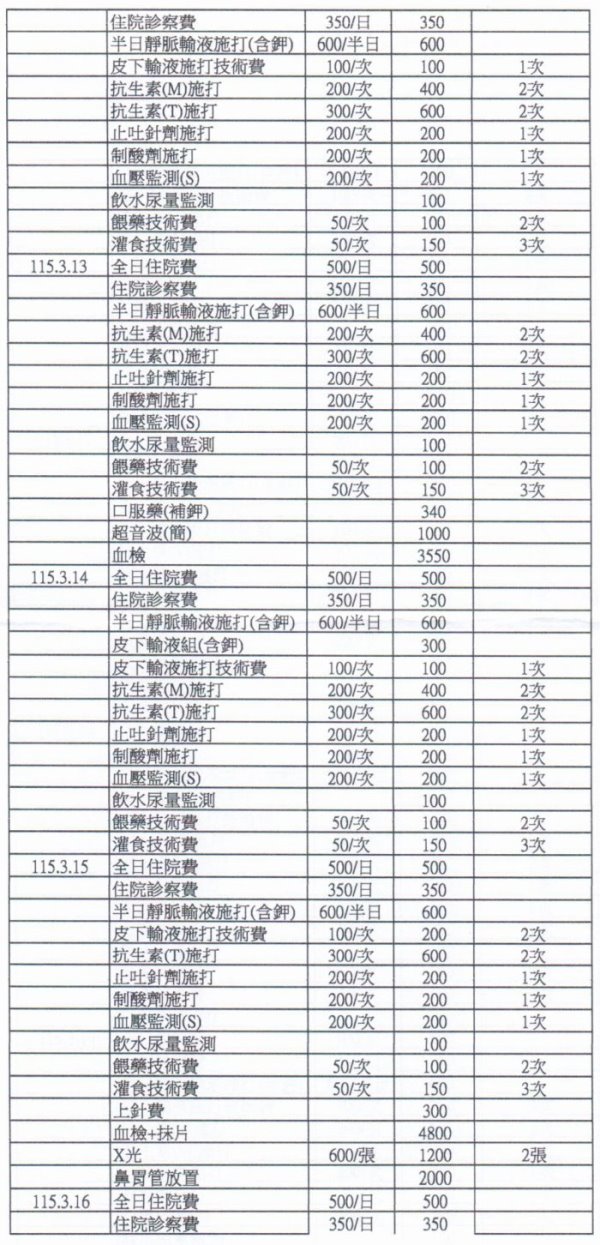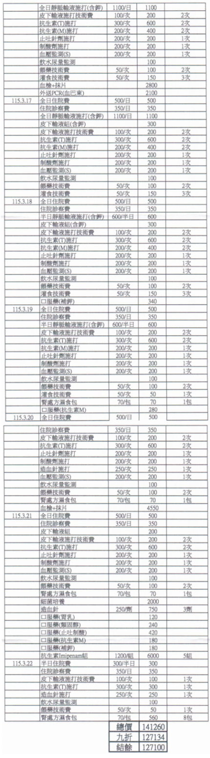 每天200C.C.分兩部位打。2/16後每天打林格150C.C.。