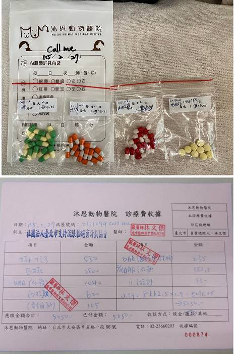 至目前callme的精神食慾都還好,因近幾個月天氣變化很大,安養之家的貓房會視天氣變化開冷暖氣、開空氣清淨機並補充相關營養保健品,希望能讓callme的呼吸道問題能較為穩定,至目前callme的精神食慾都還不錯,也一樣每天找志工撒嬌討拍拍,callme現在圓滾滾的模樣與剛被救援時的紙片身材相比,真的是雲泥天壤之別,協會多年來持續的給她最好的醫療及用心照顧,讓callme能得到幸福新生,只是她的呼吸道問題還須持續回診用藥。本筆醫助是2026年2月27日間於沐恩醫院取藥的費用。