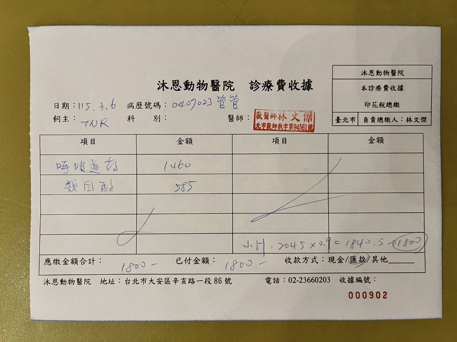2025年12月15日於沐恩回診,口腔紅腫已恢復但皮膚黴菌擴散的範圍較大,醫師已剃毛,先吃四週黴菌藥再回來驗血再看是否調整用藥。本筆醫助是管管於2026年3月6日間於沐恩醫院的費用,包含用藥。
