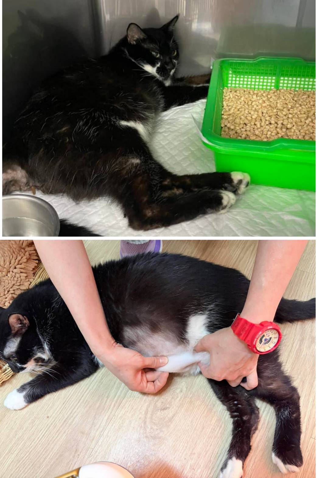 在2024年9月4日周全突然食慾精神變差、發燒,先至極光醫院看診,測量體溫有發燒、血檢及X光檢查,胰臟炎陽性、肝指數、黃疸、血糖都升高、腸道有很多便,有呼吸道症狀,先打皮下輸液,但醫師認為周全須住院,因此立即前往沐恩辦理住院,沐恩醫師研判是全身性感染、有敗血症風險,住院打靜脈抗生素及鎮定後浣腸將積便清空,但周全血糖一直居高不下,更換胰島素種類後才有逐漸降下來一些,雖然幾天後食欲精神都有恢復可以出院照護,但自此血糖一直都很高、每天早晚打胰島素及控制飲食,也須密集回診追蹤血糖。