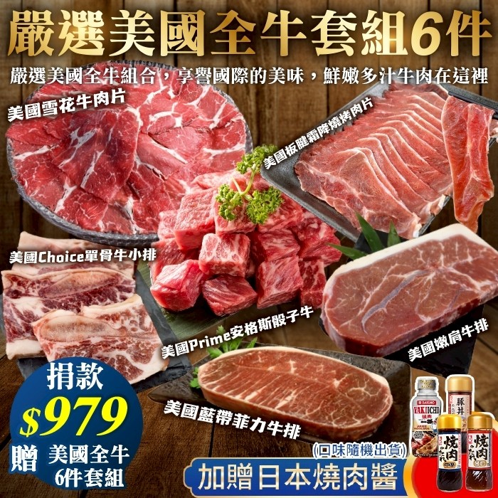 候補人員: 說明: 捐979元贈嚴選美國全牛6件套組(約3-5人份)