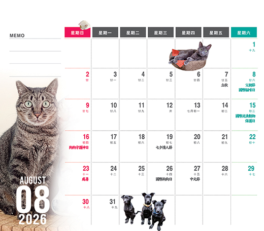 每一月份的桌曆主角,