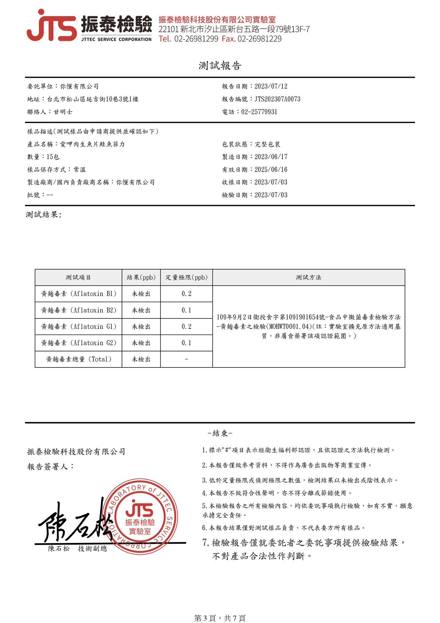 ※黃麴毒素 未檢出