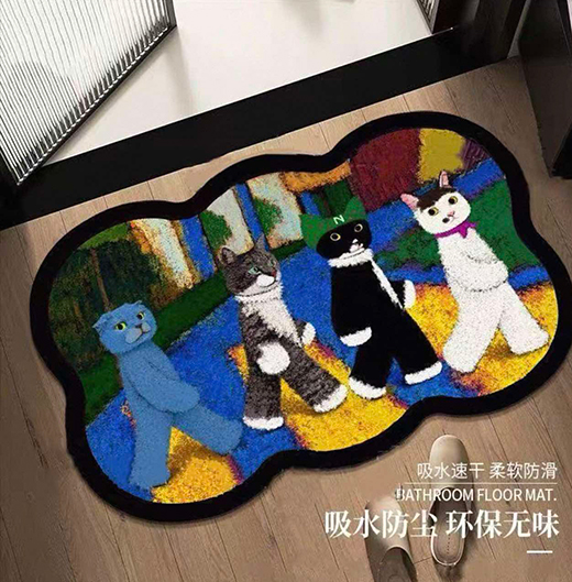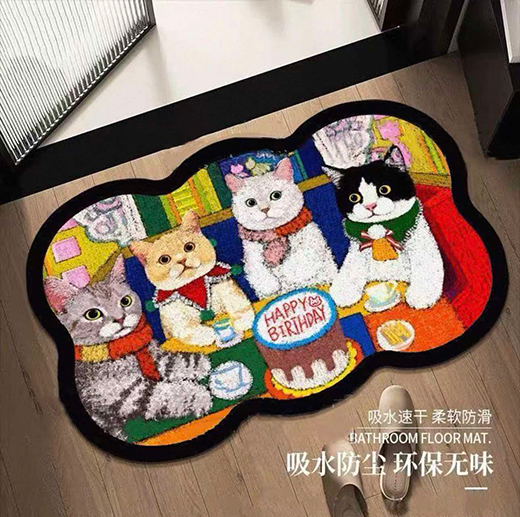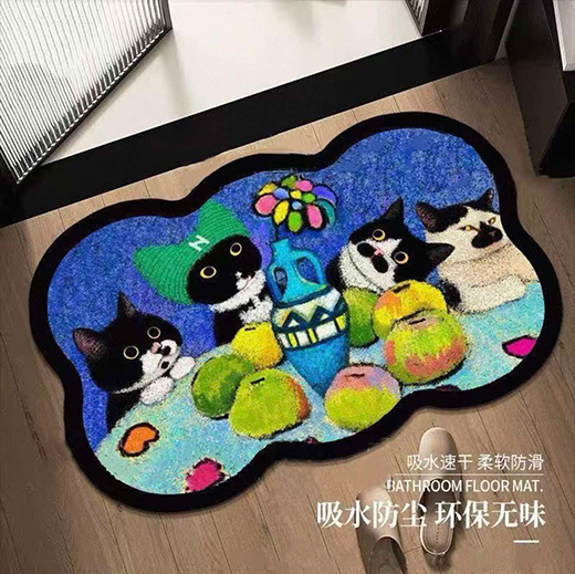 ●美國油畫風可愛小貓地墊一張(40×60 cm/花樣隨機)●