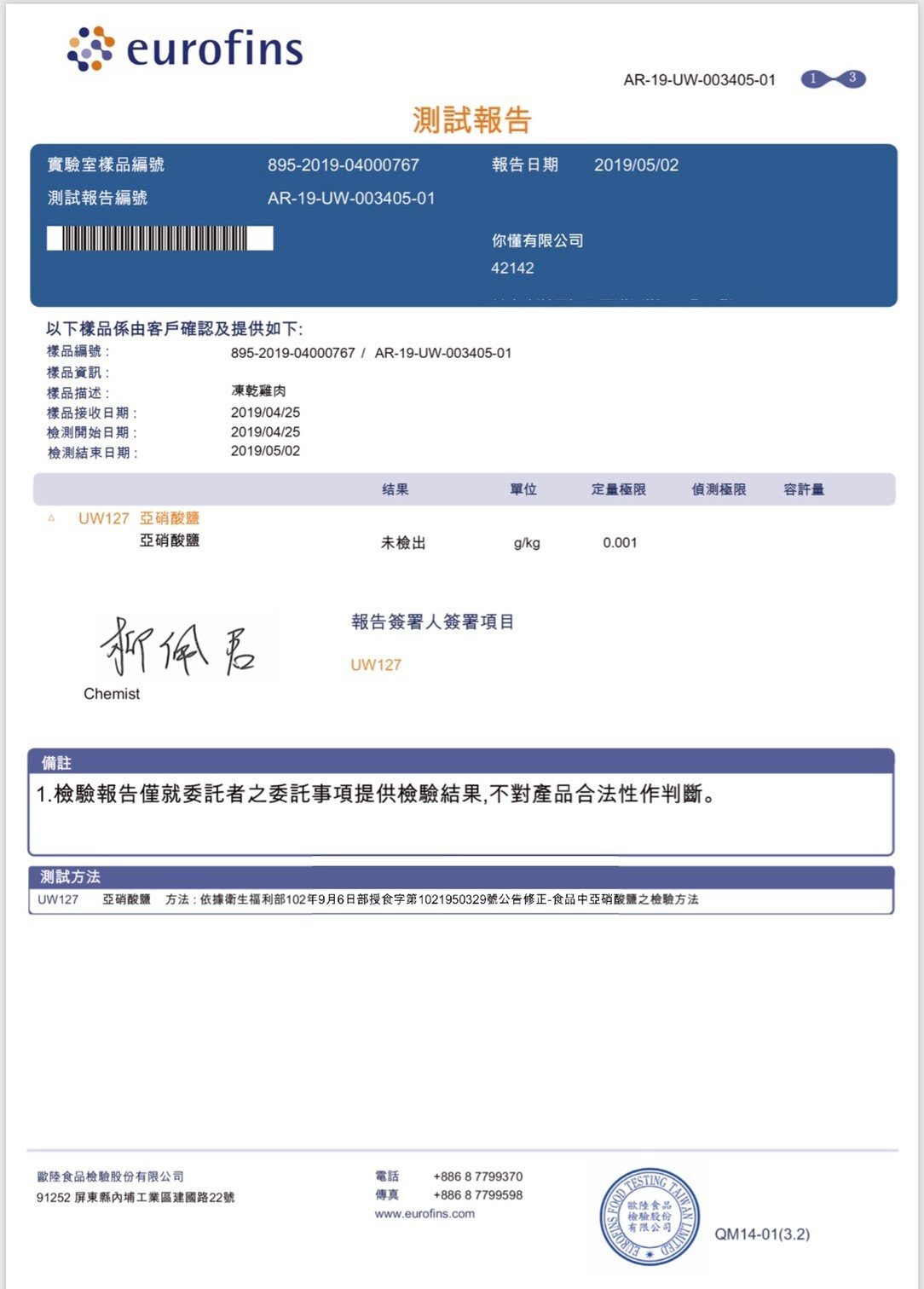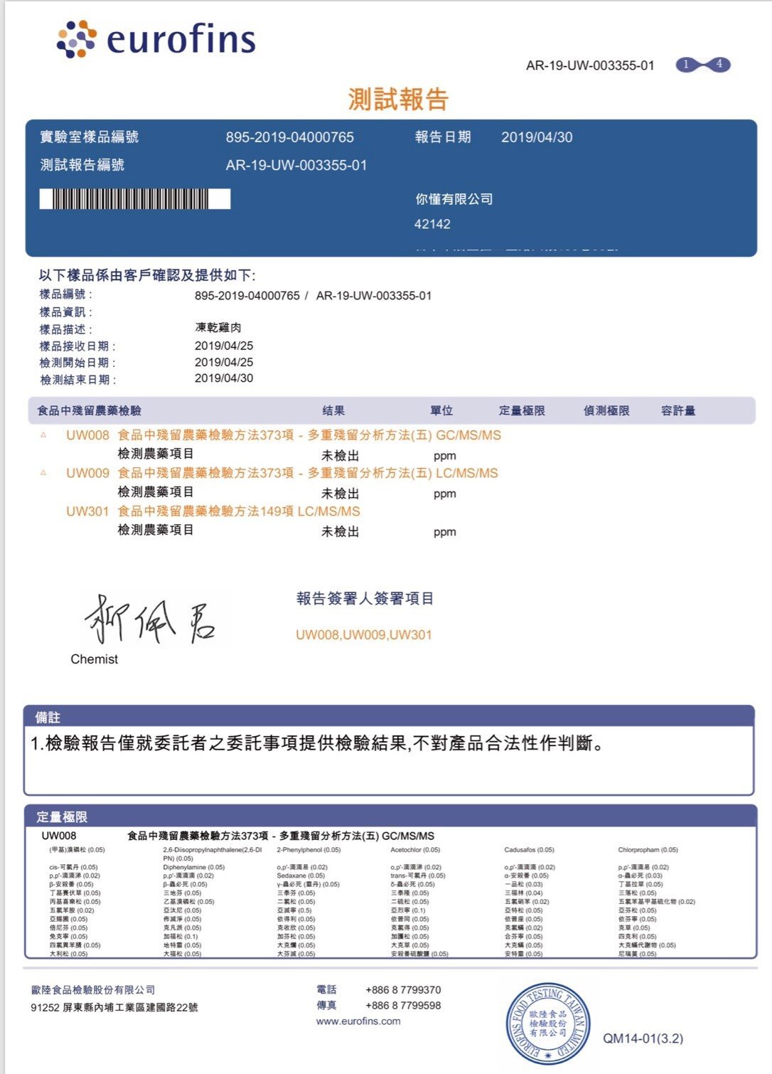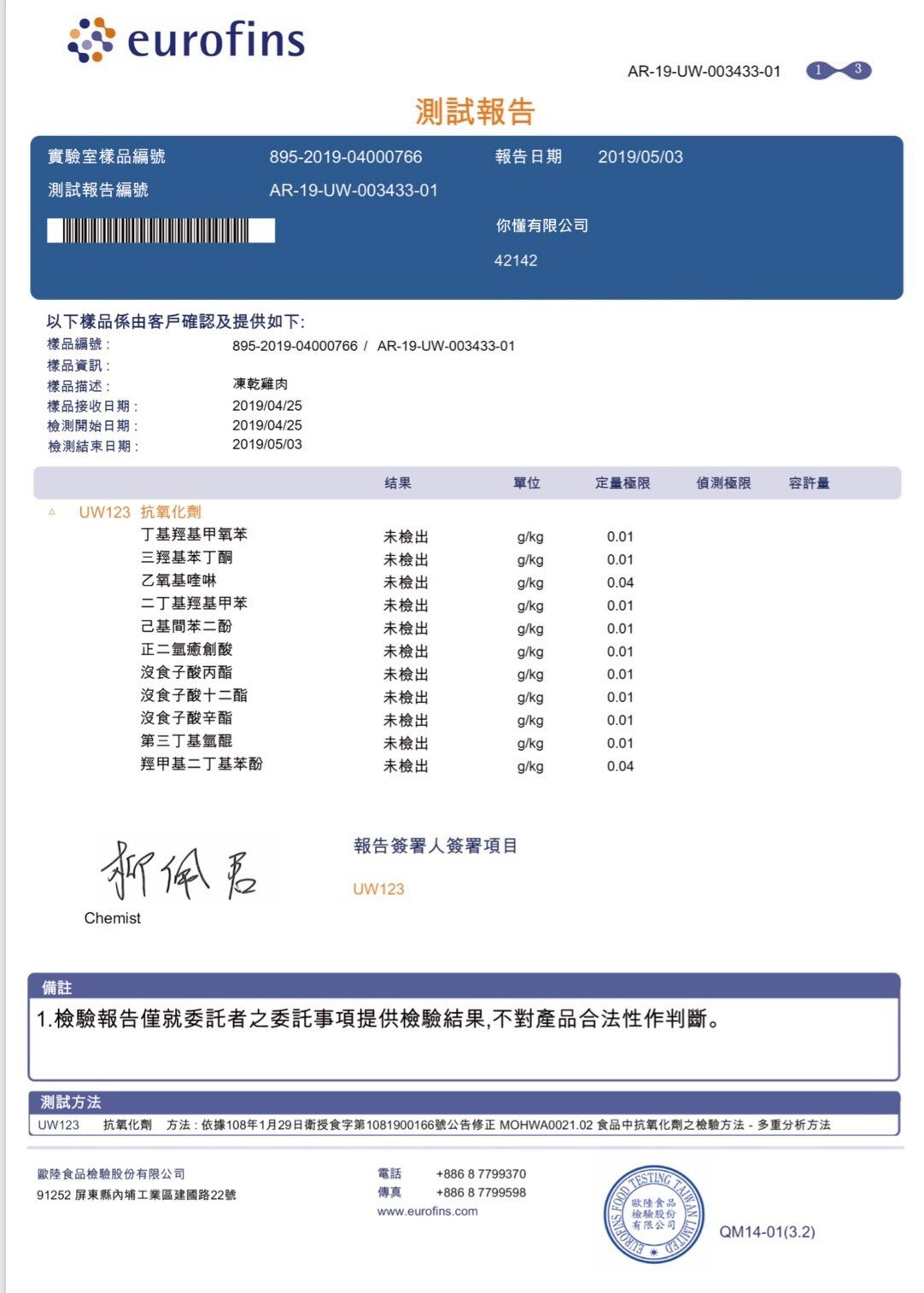 通過多項實驗室認證,