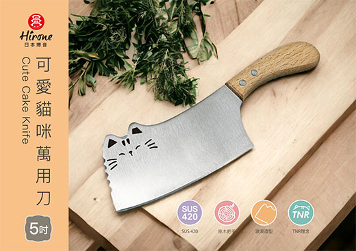 ●日本【Hirone】可愛貓咪萬用刀5吋-瞇眼款(附皮套)●