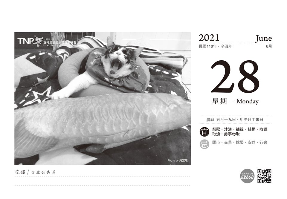 由TNR協會志工拍攝的街貓及協會安養貓咪共同擔任不同月份之主角,