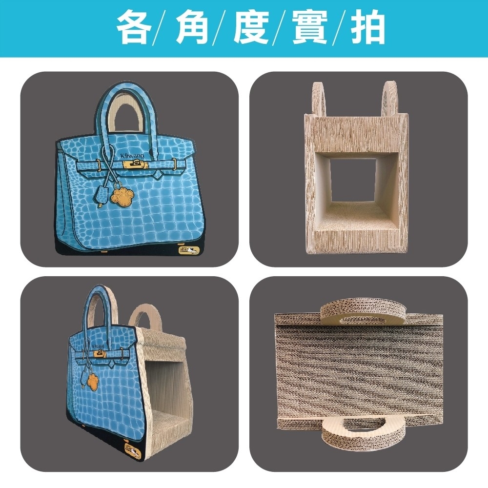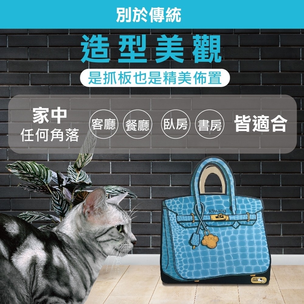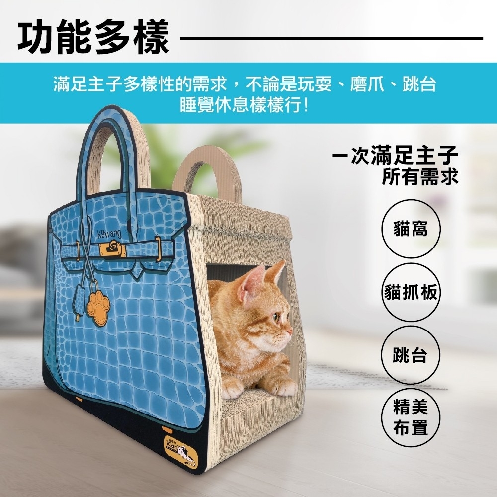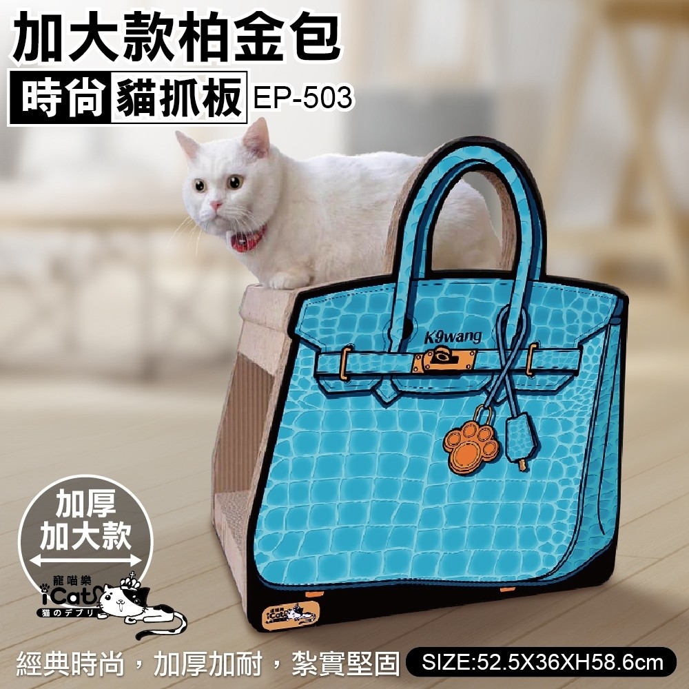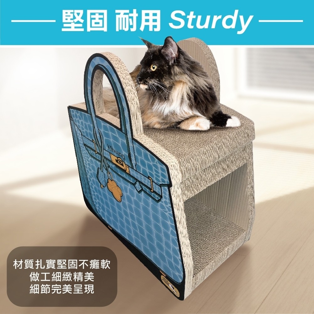 寵喵樂-愛貓加大雙層柏金包藍綠色款貓草貓抓板》EP-503
