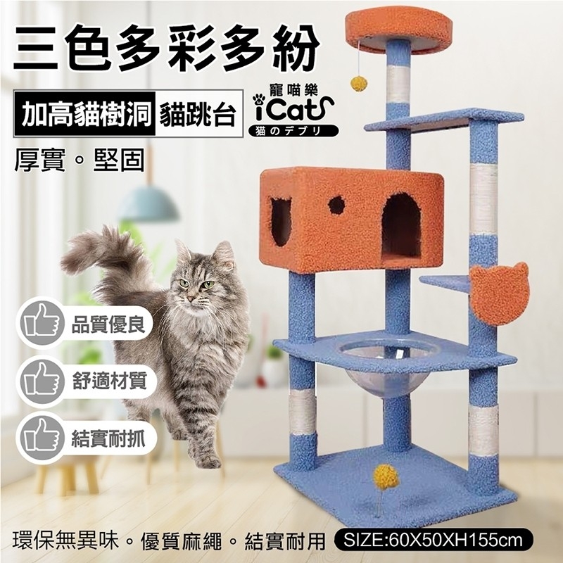 寵喵樂-三色多彩多紛加高貓樹洞貓跳台C1