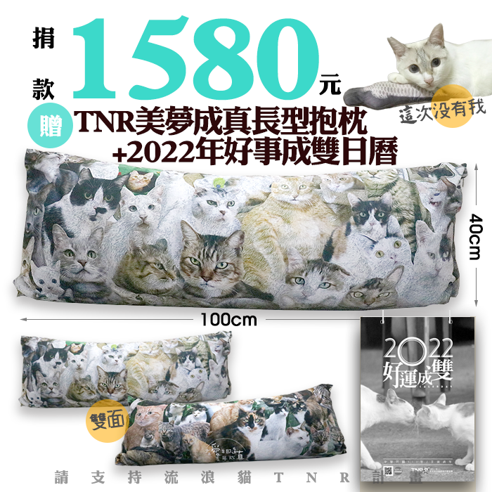 贈品名稱: 捐1580元贈TNR美夢成真長型抱枕+2022年好事成雙日曆 贈品總數: 22人 已結案 (2022-01-20 17:45:46) 報名人員: 邱扁扁(已付款)、Ching-Hsueh Tseng x2(已付款)、瑛(已付款)、林呈泰(已付款)、jerrymice(已付款)、Melody(已付款)、Bibo lin(已付款)、雙雙小花(已付款)、Fei Wei(已付款)、王小沛(已付款)、Abbilgail(已付款)、黃丫丫(已付款)、竹北咖咖艾么(已付款)、歡喵 x2(已付款)、博肖平安喜樂(已付款)、Shawn(已付款)、小翠(已付款)、AK(已付款)、張佳蕙、小阿貓&阿花仔 x2(已付款)、 候補人員: 說明: 歡迎大家踴躍捐助,