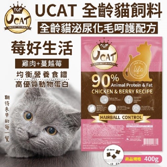 ●UCAT全齡貓化毛呵護配方-雞肉+蔓越莓●