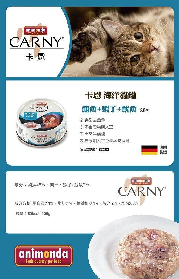 Animonda Carny Ocean《卡恩》鮪魚+蝦子+魷魚