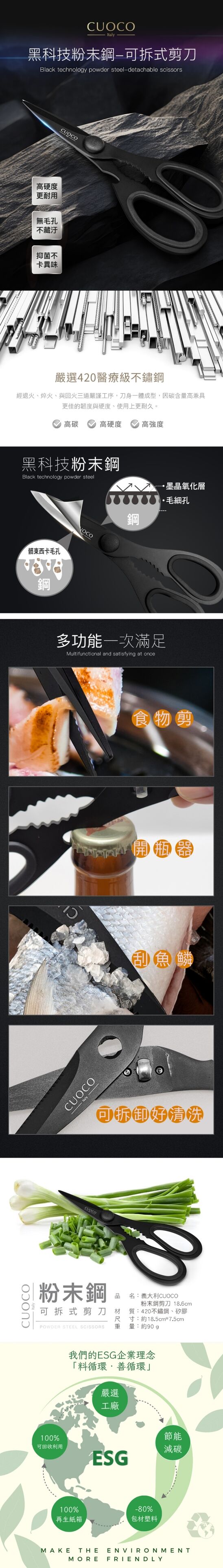 ●【義大利CUOCO】420黑科技粉末鋼刀系列-可拆式料理剪刀18.5cm●