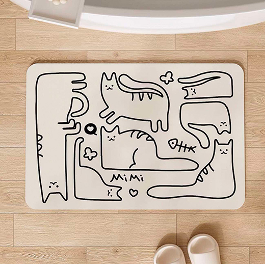 ●線條貓珪藻土超吸水地墊(40*60cm)●