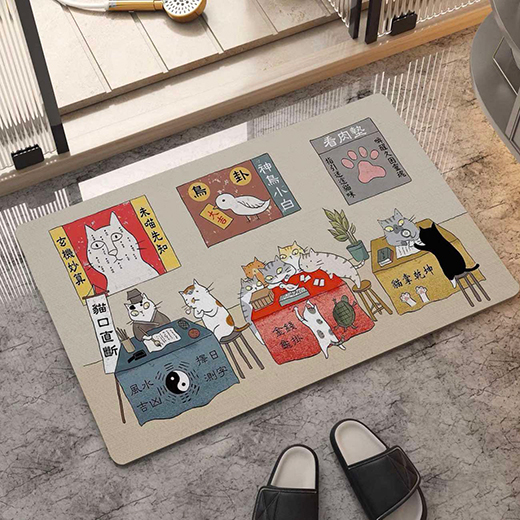 硅藻土地墊,40*60cm,止滑、吸水、快乾,可當腳踏墊、落砂墊、或是寵物餐墊,多種使用方式,圖案美觀可愛,皆為日式擬人貓生活。