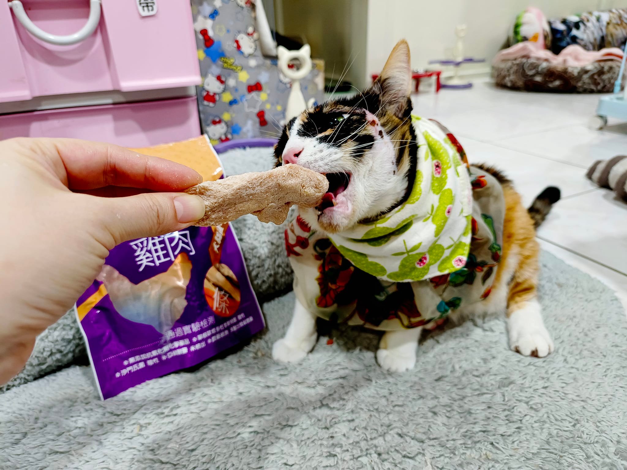 1.請注意純肉塊需泡水、或是捏碎與剪小塊餵食,避免貓咪食用過快,忽略咀嚼而嘔吐。