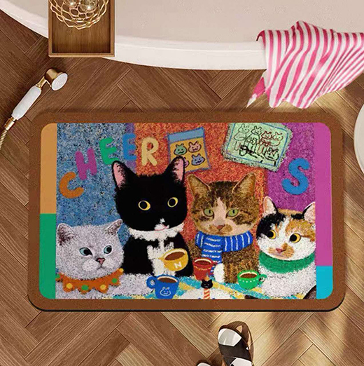 硅藻土地墊吸水防滑、圖案可愛、美觀又實用。