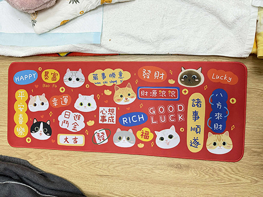 ●紅色招財貓咪桌墊/餐墊(止滑/80*30cm)●
