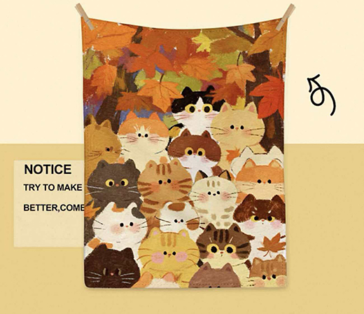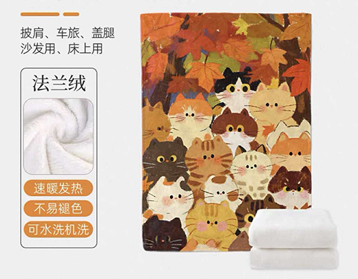 ●楓紅樹下好多貓法蘭絨毛毯(200*150cm)