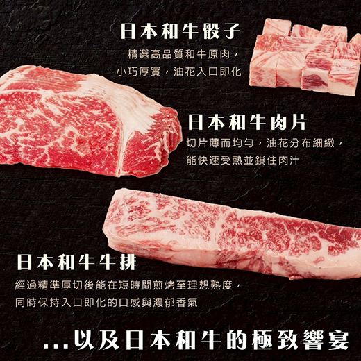 嚴選頂級和牛部位,油花分布細緻均勻,肉質柔嫩、入口即化,完整呈現日式和牛的甘甜與濃郁肉香。