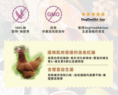 低GI無麩質:不添玉米、小麥、大豆等易過敏食材