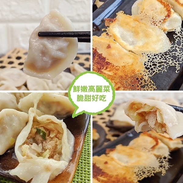 內容物:麵粉.豬肉.高麗菜.韭菜.水.非基因改造大豆蛋白.雞肉.在來米粉.糖.薑.大豆油.芝麻油.樹薯澱粉.L-麩酸鈉.鹽.釀造醬油.黑胡椒粒.甘藷粕粉.花椒粒.白胡椒粒.五香粉.D-山梨醇液.肉桂.香料.乙醯化己二酸二澱粉.小麥蛋白.蛋白粉