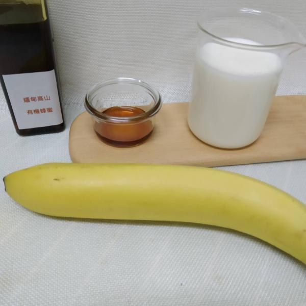台灣香蕉、100%全脂牛奶(紐西蘭牧放牛)、緬甸高山有機蜂蜜(天然野生)、冷萃食用級椰子油(馬來西亞)、精製芝麻油、100%純芥花油(澳洲)。