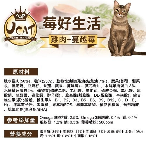 UCAT添加小分子水解蛋白,幫助腸胃照護消化。讓喵寶皮膚不抓抓。