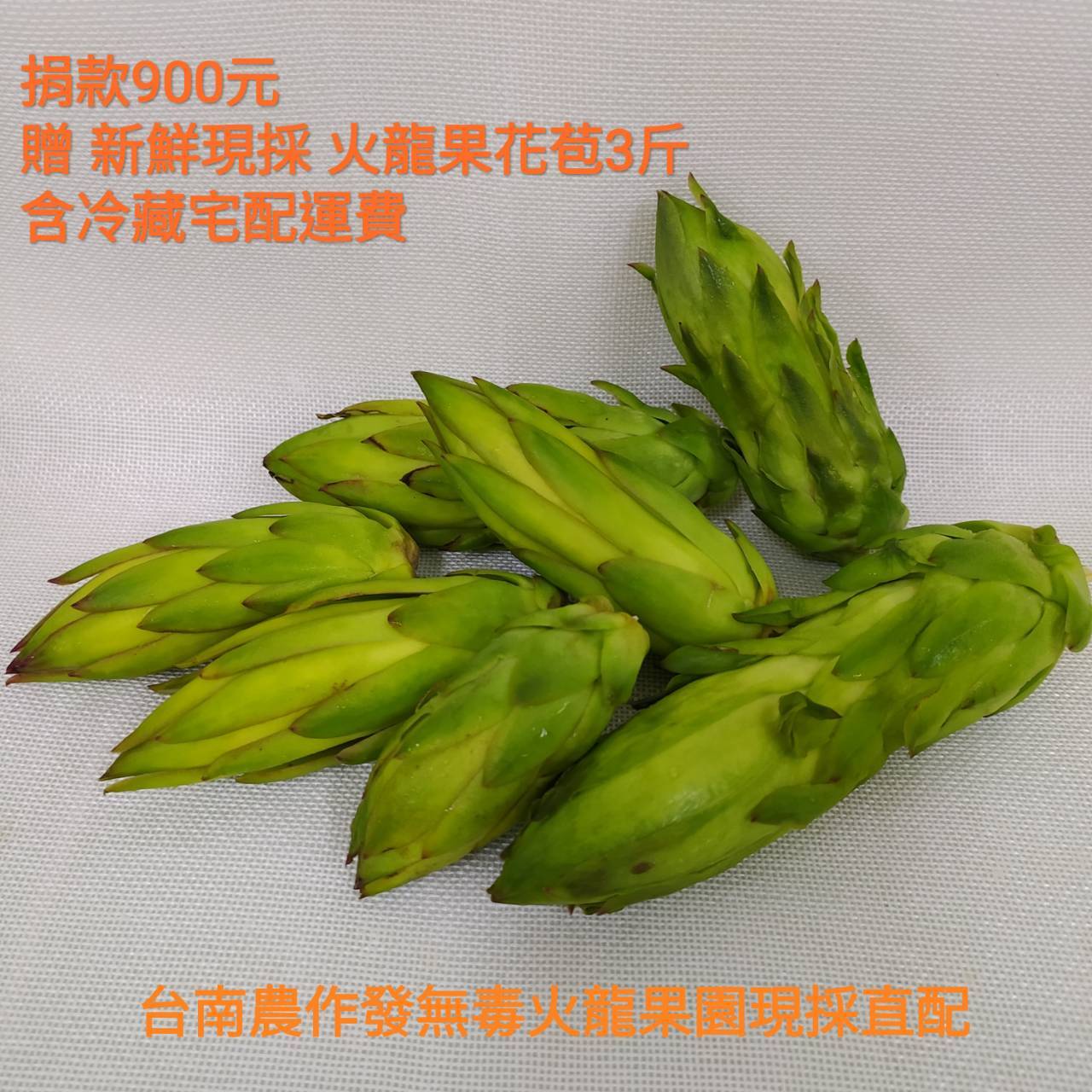 贈品名稱: 捐900元 贈新鮮現採火龍果花苞3斤 含冷藏宅配運費 果園現採直配 贈品總數: 5人 已結案 (2020-10-20 09:35:04) 報名人員: 周星星(已付款)、Amy H. T. Lin(已付款)、Choco Chen(已付款)、Tanya(已付款)、吳孟潔(已付款)、 候補人員: 說明: 新鮮現採火龍果花苞3斤 捐款900元 含運 (冷藏宅配)